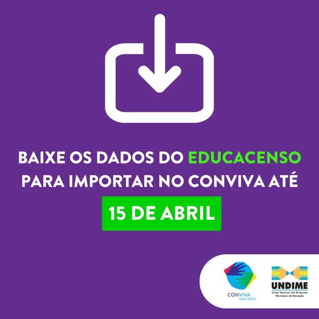 O Instituto Nacional de Estudos e Pesquisas Educacionais Anísio Teixeira (Inep) abriu, no dia 1º de abril, o período de retificação referente a segunda etapa do Censo Escolar 2023. A partir desta data, o sistema Educacenso está disponível para exportação de dados. Portanto, é possível baixar os dados de Matrícula Inicial 2023 para fazer a importação na plataforma Conviva Educação. O prazo será encerrado no dia 15 de abril.